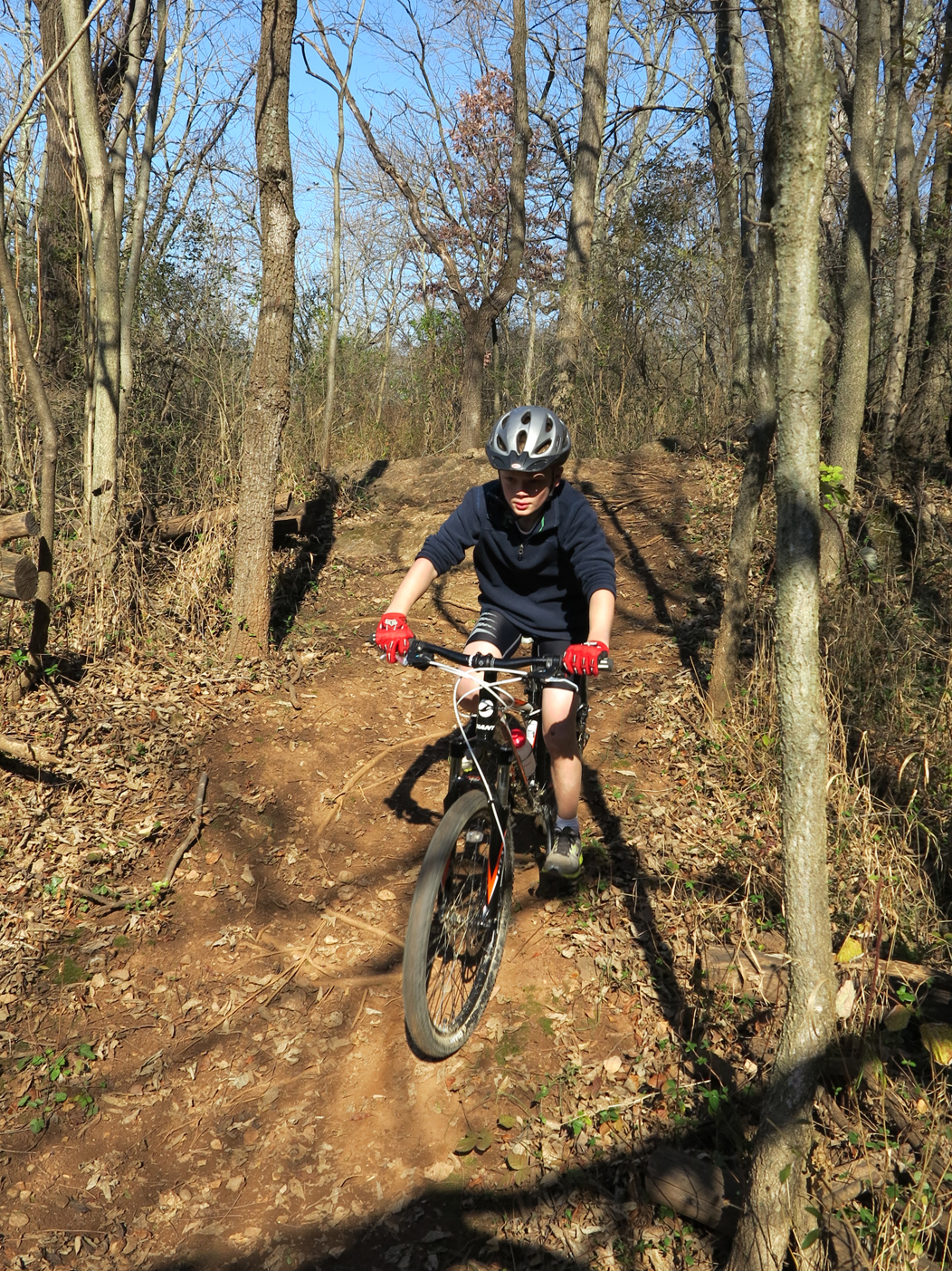 Dave took off with his younger son Emmet on my younger son Grant's old 24 inch wheel GT mountain bike