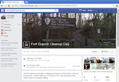 Trail Clean Up Day at Fort Dupont Park on Saturday May 9th 2015 Come out to Fort Dupont to help Clean Up the ONLY LEGAL Mountain Biking in Washington DC!Event Information on FACEBOOK https://www.facebook.com/events